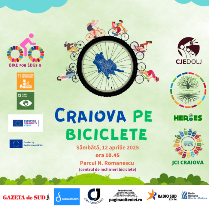 Craiovenii iubitori de mișcare și în special de ciclism sunt așteptați sâmbătă, 12 aprilie 2025, în Parcul Nicolae Romanescu, începând cu ora 10.45, la intrarea de la monument, pentru a pedala împreună în cadrul evenimentului „Craiova pe biciclete”. Evenimentul urmărește să atragă atenția participanților din trafic cu privire la siguranța bicicliștilor și, totodată, să promoveze mersul pe bicicletă, ca mijloc de reducere a gradului de poluare citadină. Locuitorii orașului care vor răspunde invitației vor face o plimbare pe bicicletă de aproximativ opt kilometri, pe următorul traseu: Parcul Nicolae Romanescu (monument) – Bulevardul Nicolae Romanescu – Strada Corneliu Coposu – Strada Caracal – Strada Henri Coandă – Strada Împăratul Traian – Strada Spania – Calea București – Pasajul Universității – Strada Eugeniu Carada – Strada C.D. Fortunescu – Strada Frații Buzești – Strada Simion Bărnuțiu – Calea Unirii – Bulevardul Nicolae Romanescu – Parcul Nicolae Romanescu (monument). Participarea la acest eveniment… Read More